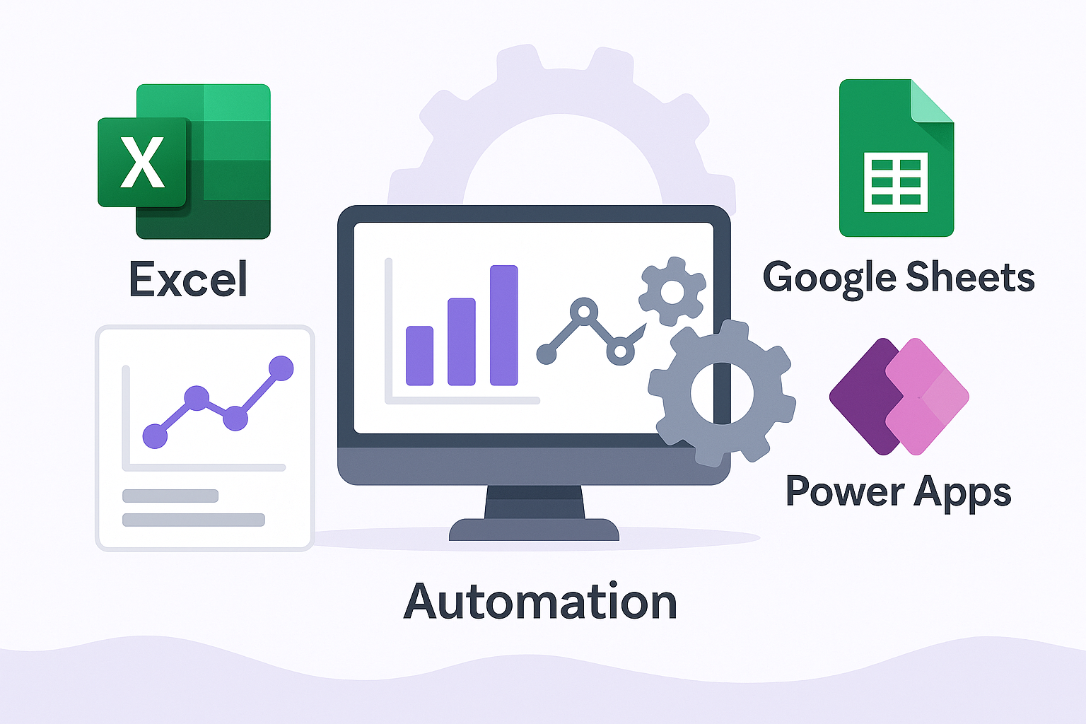 Automate with Power Apps, Power BI, Excel, Google Sheets — no need for expensive systems or developers.