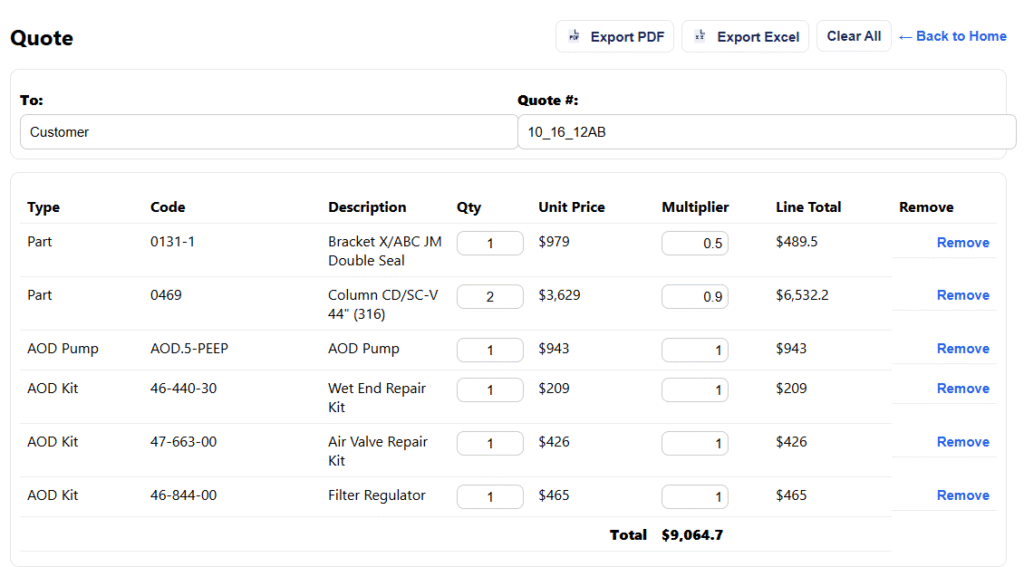 Convert a manual process of building a quote from a PDF into a digital tool that your customers can used directly in seconds.